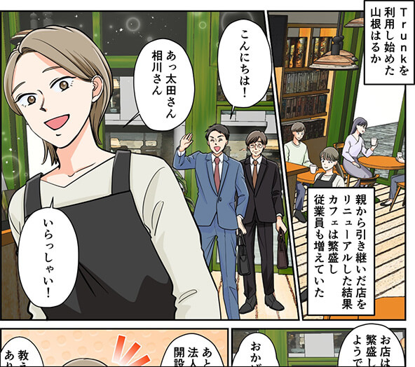 カフェが繁盛し従業員も増えるなか、給与・賞与の振込作業に不安を抱えていた山根。そんな時、新たに「Trunk」のメリットを知る!