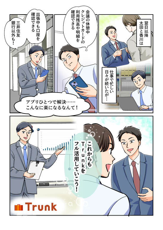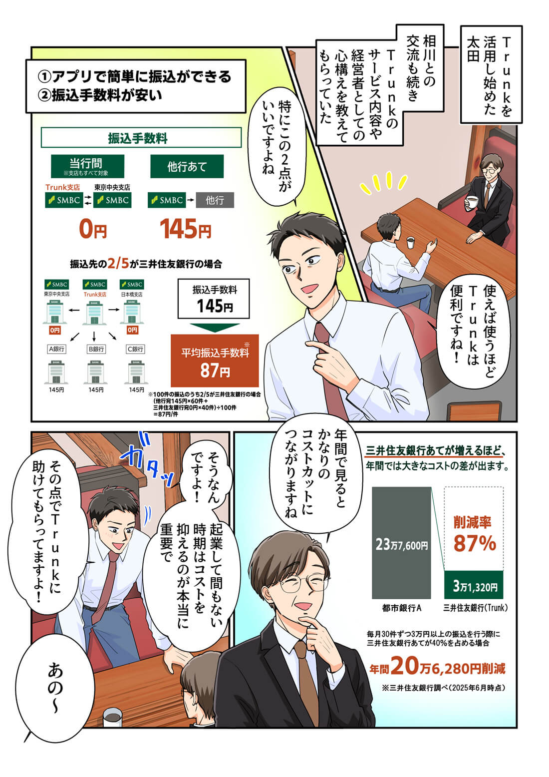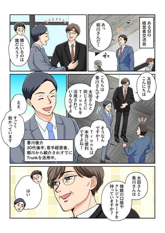 経営者交流会で若手経営者の香川と出会う。複数の法人口座を持っている香川は残高確認や資金管理の煩雑さで悩みを抱えていたが…