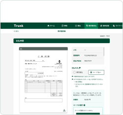 「請求書支払」- Trunkなら、請求書の読取から支払まで、スマホで完結。経理業務を効率化します。PCでも同様に利用できます。詳細は以下をご参照ください。