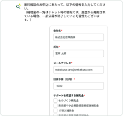 ご希望の方は、申請する補助金を選んで、無料相談を申し込みます。