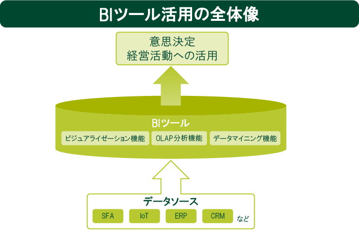前述のとおり、BIツールは、基幹系・情報系・戦略系システム等のデータ収集・加工・分析・可視化を可能にするものです。