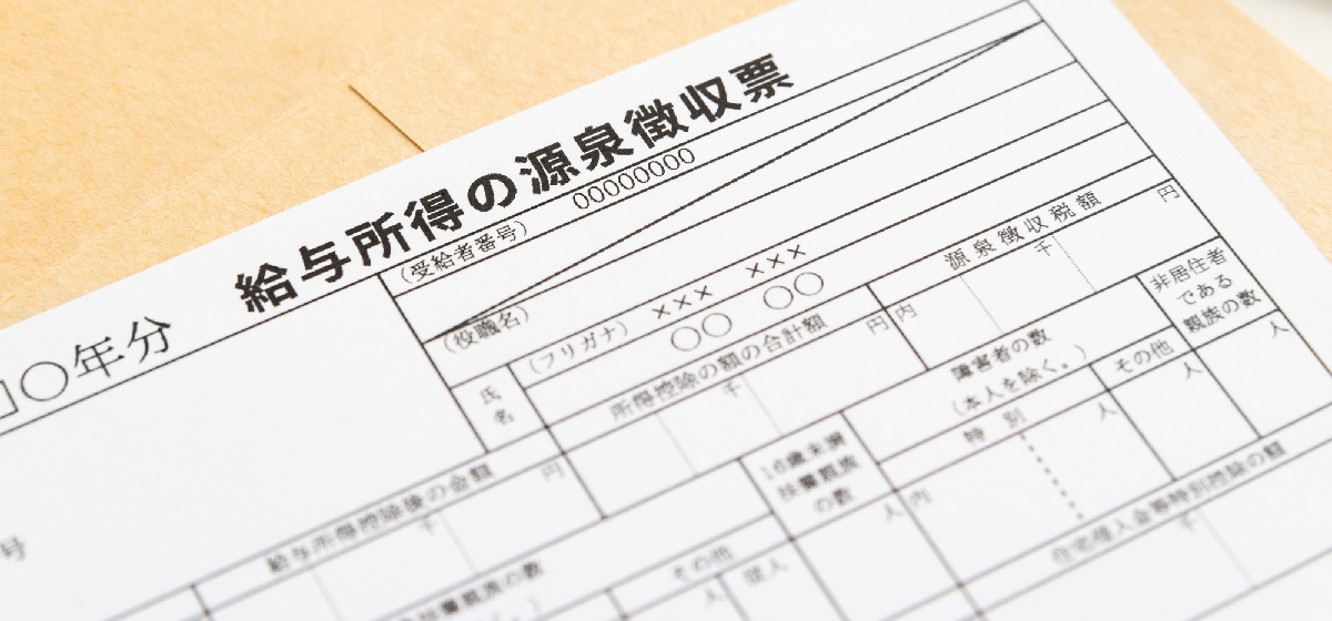 源泉徴収票とは、勤務先から1年間(1月1日〜12月31日)に支払われた給与や賞与、所得税などの情報がまとめられた書類です。