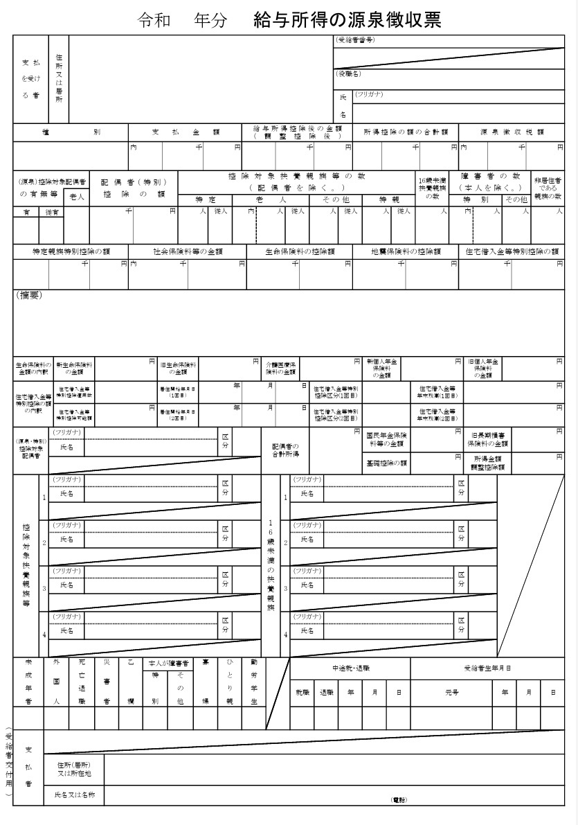 | 源泉徴収票 | 勤務先 | 年末調整終了後あるいは退職時に勤務先から配布 |