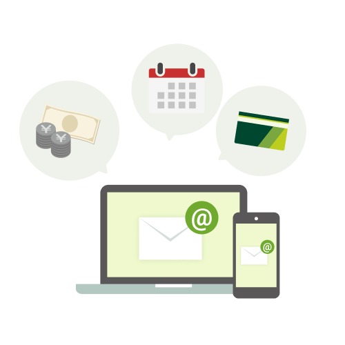 カードをご利用いただいた利用先や日時、金額などを都度お知らせいたします。身に覚えのない利用もすぐに把握できるため、カードを安心してご利用いただけます。