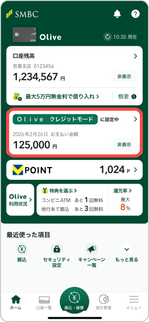 Olive(三井住友銀行口座)にアップデート