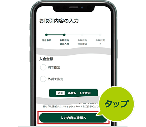 (為替レートを表示し、手続きするレートをご確認ください。)