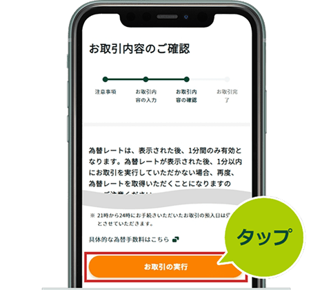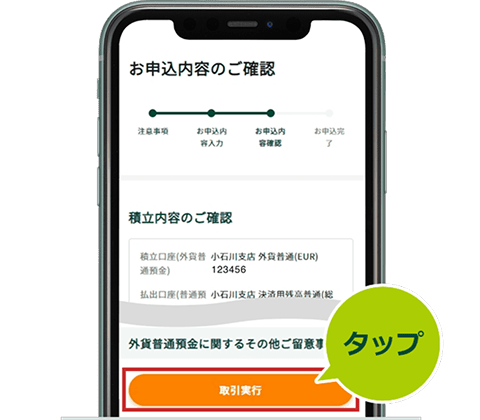 お申込内容を確認いただき、問題なければ「取引実行」をタップ。