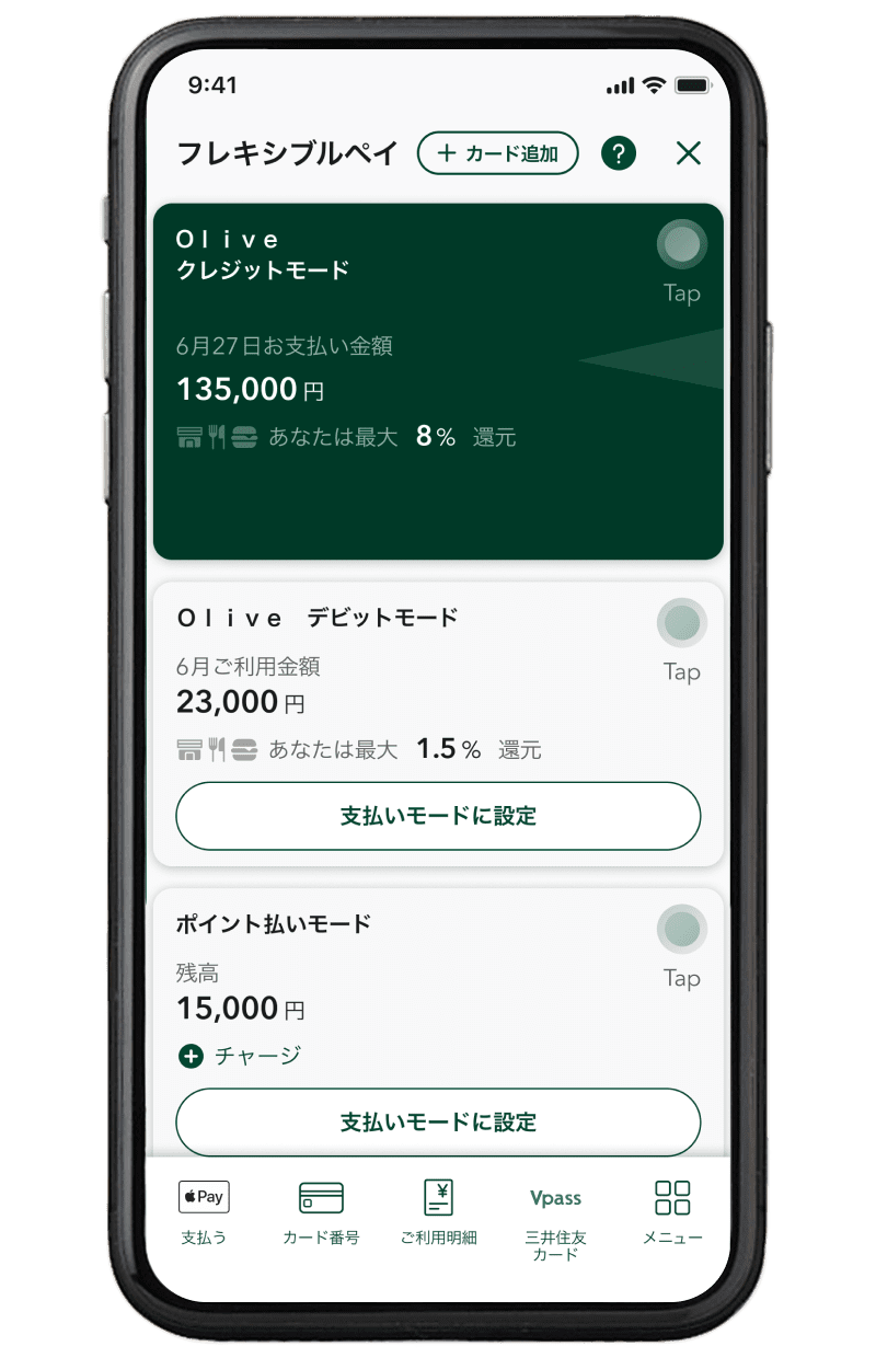 • ※4 家族ポイントによる最大+5%還元はOliveアカウント(デビットモード)は対象外です。家族ポイント最大13%還元を受けるには、取引条件があります。