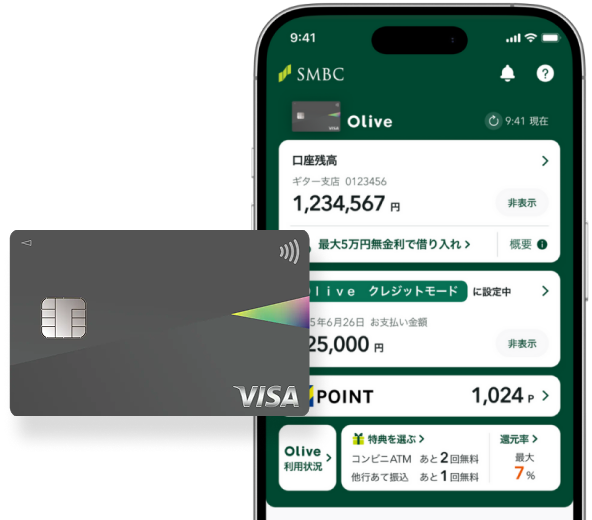 Oliveは、三井住友銀行の口座、クレジット、デビット、ポイント払い、さらには保険・証券まで、1つのアプリでまとめて管理できる、新たなデジタル口座です。
