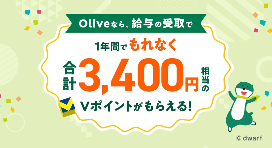 - ・Oliveアカウント「選べる特典」にて「給与・年金受取特典」を選択した当月に、給与受取もしくは年金受取の実績がある場合、翌月末頃までに順次200ポイント付与されます。