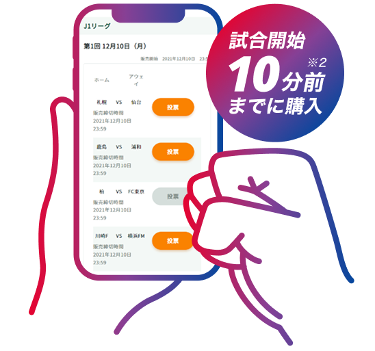 - 応援したい試合/競技会を選び、勝敗を予想して購入!オッズ※1や過去の試合結果を見ながら選べる!
