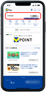 アプリ内にVisaのバーチャルプリペイドカードを発行。貯まったVポイントを「1ポイント=1円」でチャージすると、VポイントPay(Visa・iD)でのお買い物に利用できます。