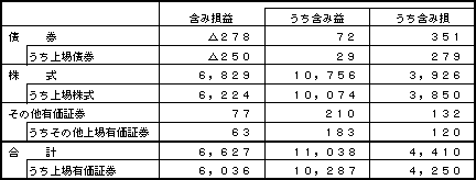 1.上場有価証券の含み損益、評価損について
