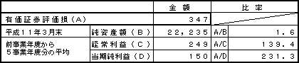 平成12年3月期末の有価証券含み損益、