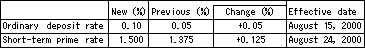The Sakura Bank, Limited (President Akishige Okada) decided to revise its interest rates as follows;