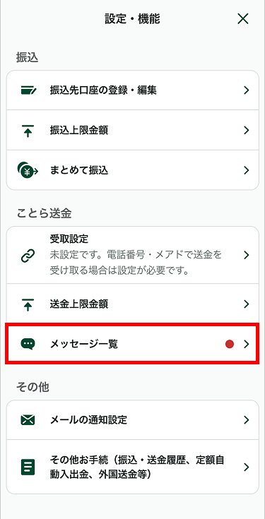 「着金メッセージ」のタブをタップし、受信したメッセージ内容を確認。
