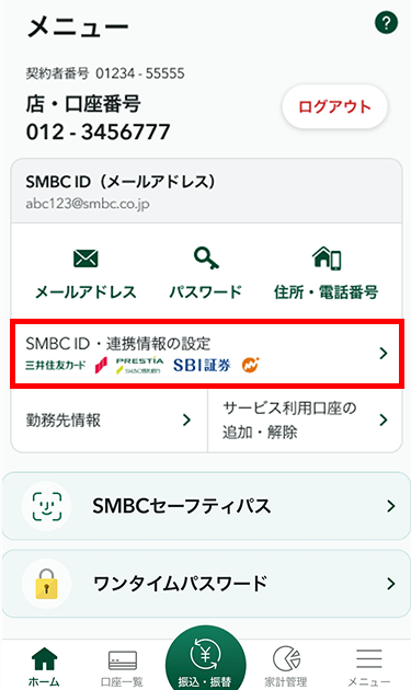 2「メニュー」にある、「SMBC ID・連携情報の設定」をタップします。
