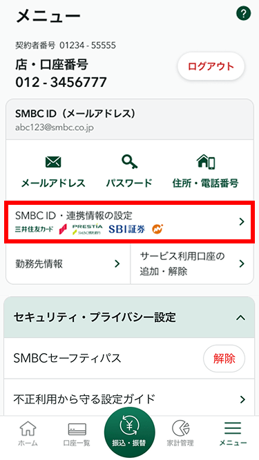 - 2「SMBC ID・連携情報の設定」をタップします。