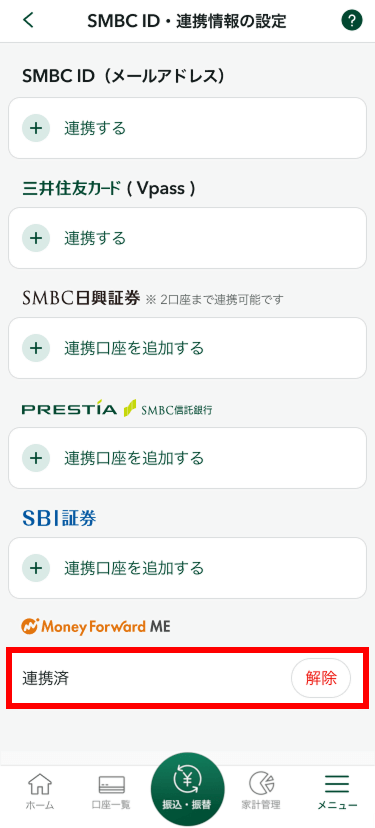 マネーフォワード MEとの解除手順