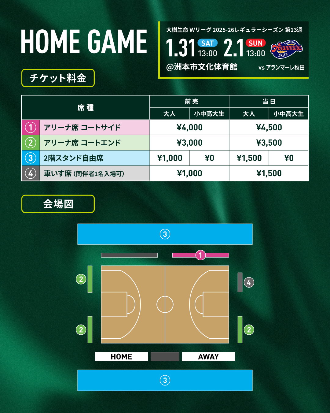 1月31日(土)・2月1日(日)洲本市文化体育館にてホームゲームを開催いたします。